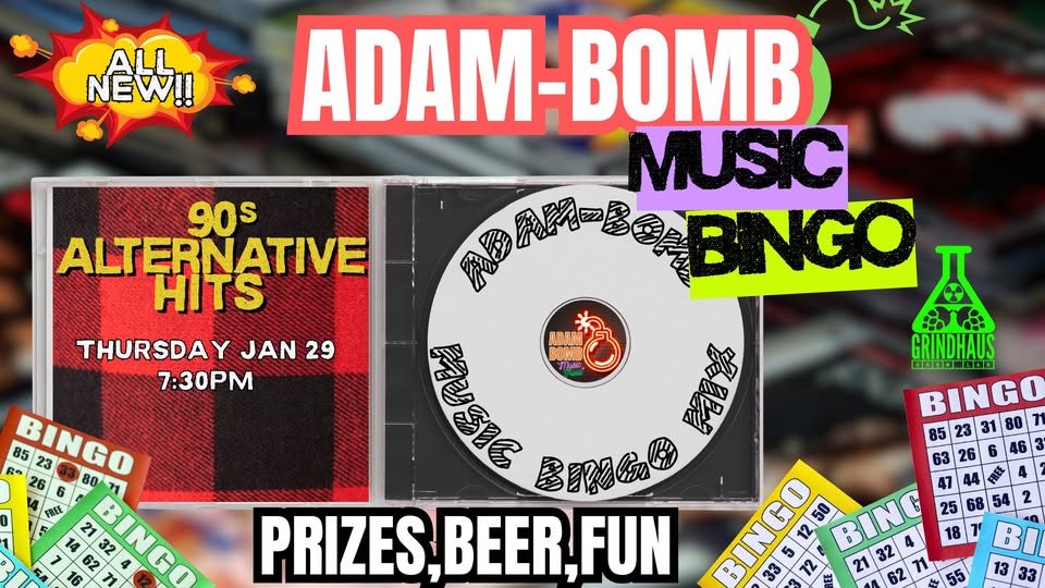 Thursday, January 29, 7:30pm – ’90s Alternative Music Bingo with Adam-Bomb!💣