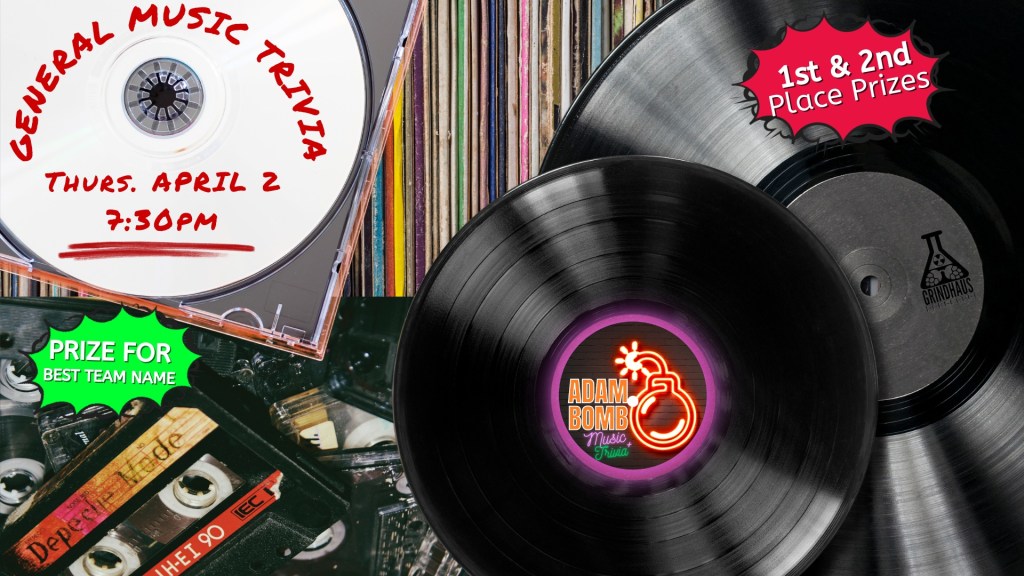 Thursday, April 2, 7:30pm – Music Trivia with Adam-Bomb💣