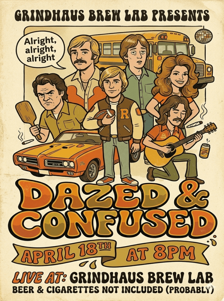 #DazedAndConfused #GrindhausBrewLab #AlrightAlrightAlright #BreweryMovieNight #70sVibe